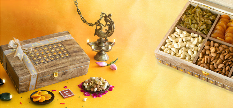 THIS DIWALI GIFT YOUR FRIENDS, FAMILY AND LOVED ONES SPECIAL CURATED DIWALI GIFT BOXES FROM KESAR. THIS BOX CONTAINS CASHEW 150 GM, ALMOND 150 GM, RAISIN 150 GM, APRICOT 150...