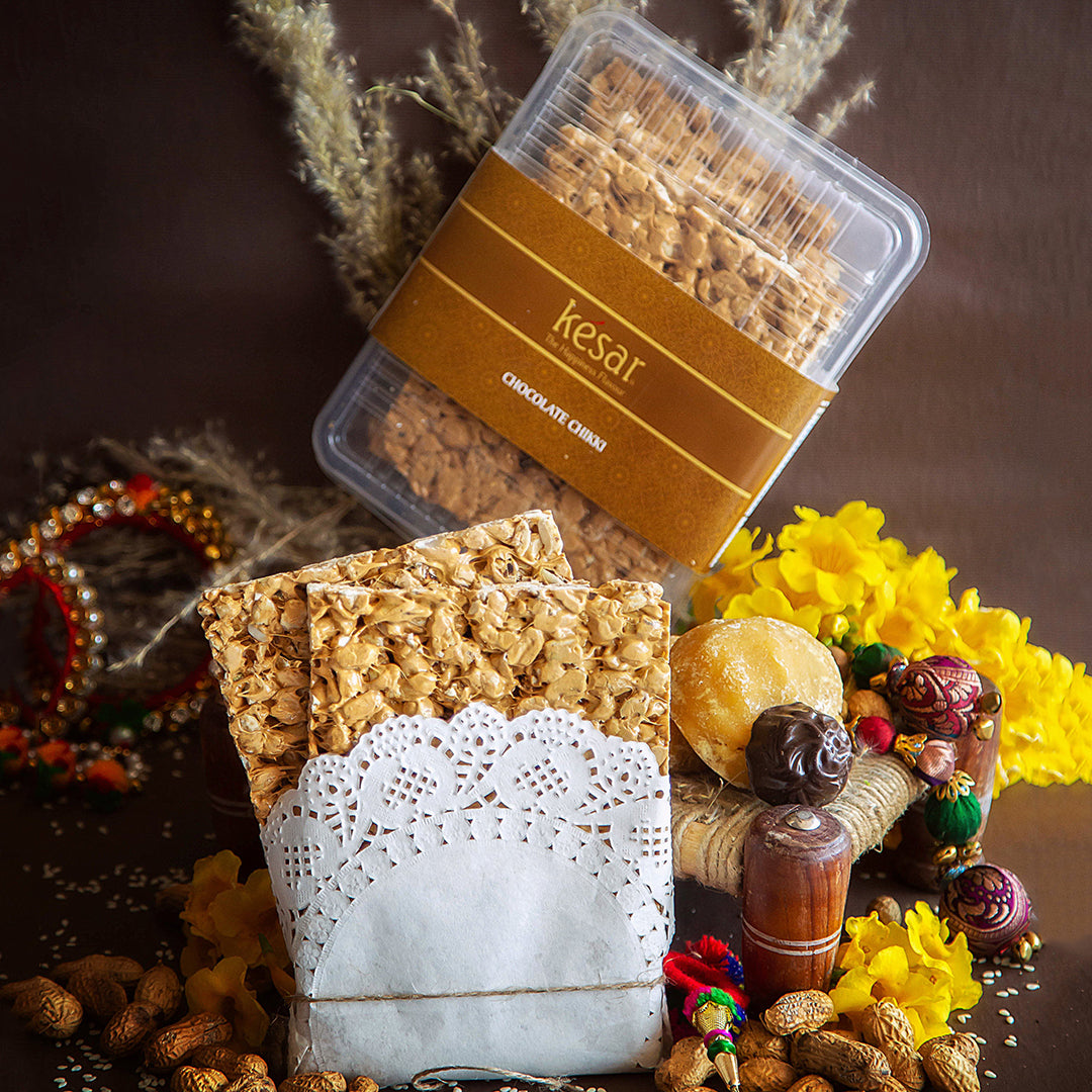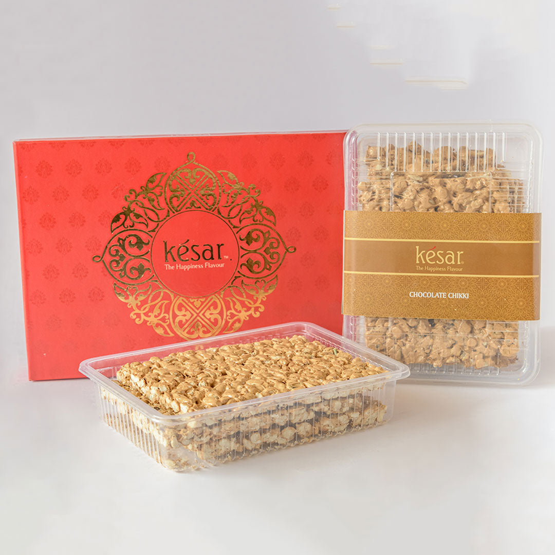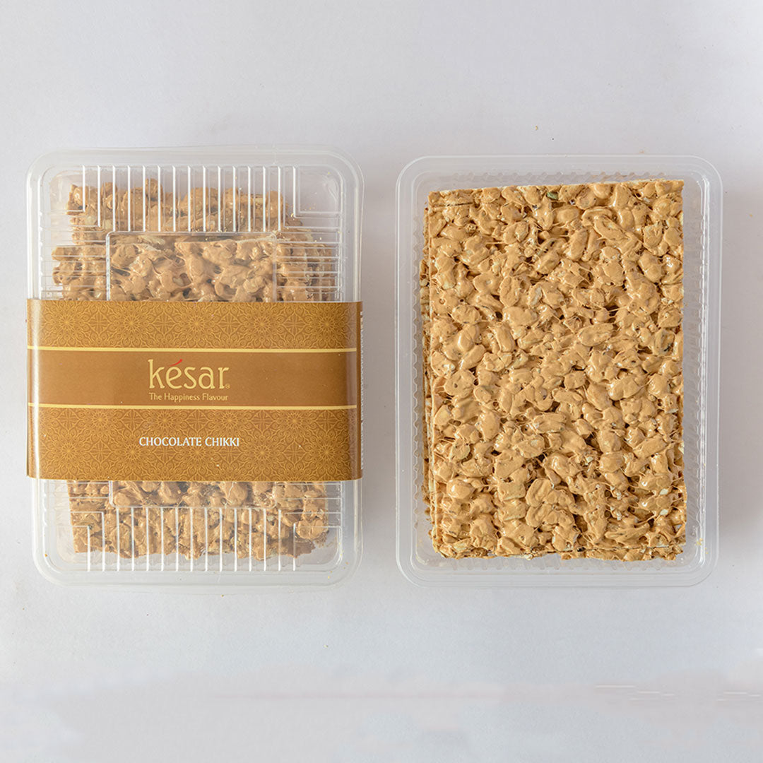 Indulge in the delightful fusion of traditional crunch and contemporary flavor with our Chocolate Chikki from Kesar Sweets. This innovative brittle combines the satisfying texture of our classic chikki base (crafted from roasted nuts or seeds and natural jaggery) with a rich, decadent chocolate coating or inclusion.