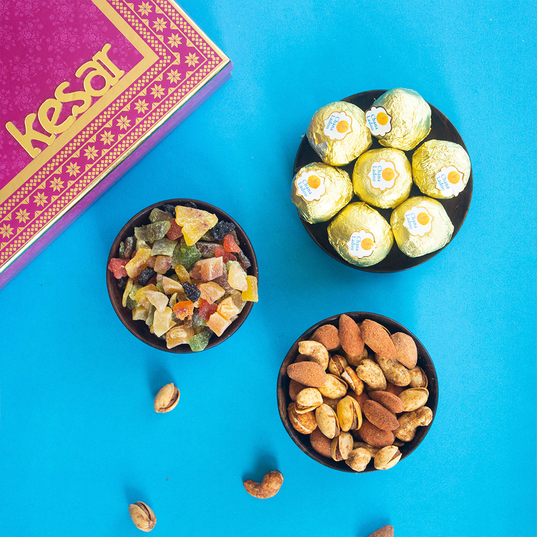 Kesar is one of the most prominent mithai boutiques of Jaipur, renowned for being authentic Halwais. This Diwali, celebrate the festival of lights with Kesar’s exclusive happiness hampers that include Premium Sweets, Flavored Dry Fruits, Traditional Mithai, Mithai Cakes, Dehydrated Fruits, Savoury Treats, Snacks & Trail Mixes.Kesar sweets have been admired by Master Chef Vikas Khanna and also featured on the Fox Life Discovery channel. Every sweet at Kesar is prepared with Pure Desi Ghee, Handpicked Dry Fruits, and Authentic Ingredients. Each hamper is crafted with care and affection, making it a perfect gift for your loved ones, family, friends, and colleagues.We assure you that Kesar’s Diwali Hampers & Gift Boxes will light up every celebration and bring smiles to every face.