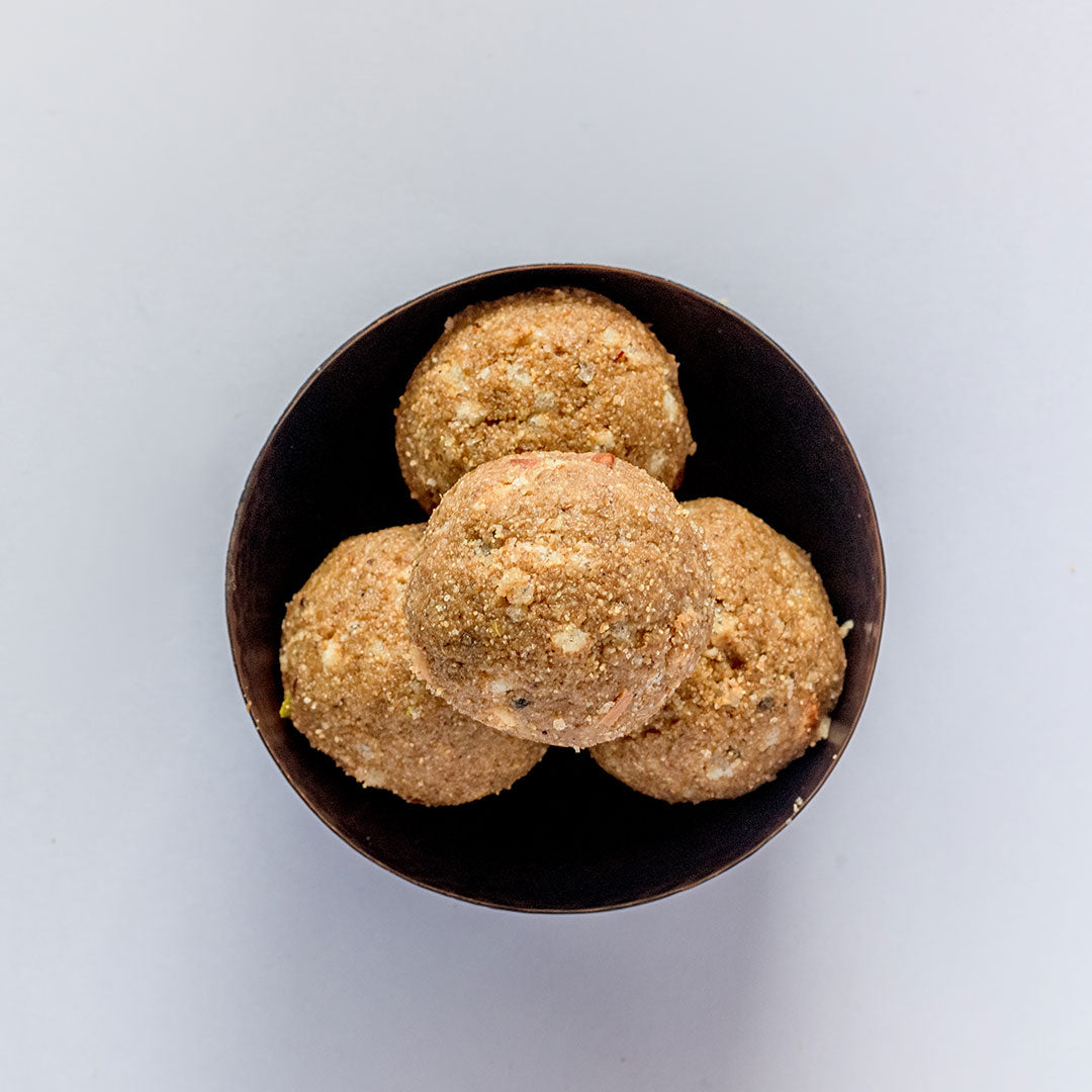These nutritious, energy-boosting laddoos are beautifully presented in our elegant, premium Kesar packaging, making them the perfect sophisticated gift that embodies "The Happiness Flavour."