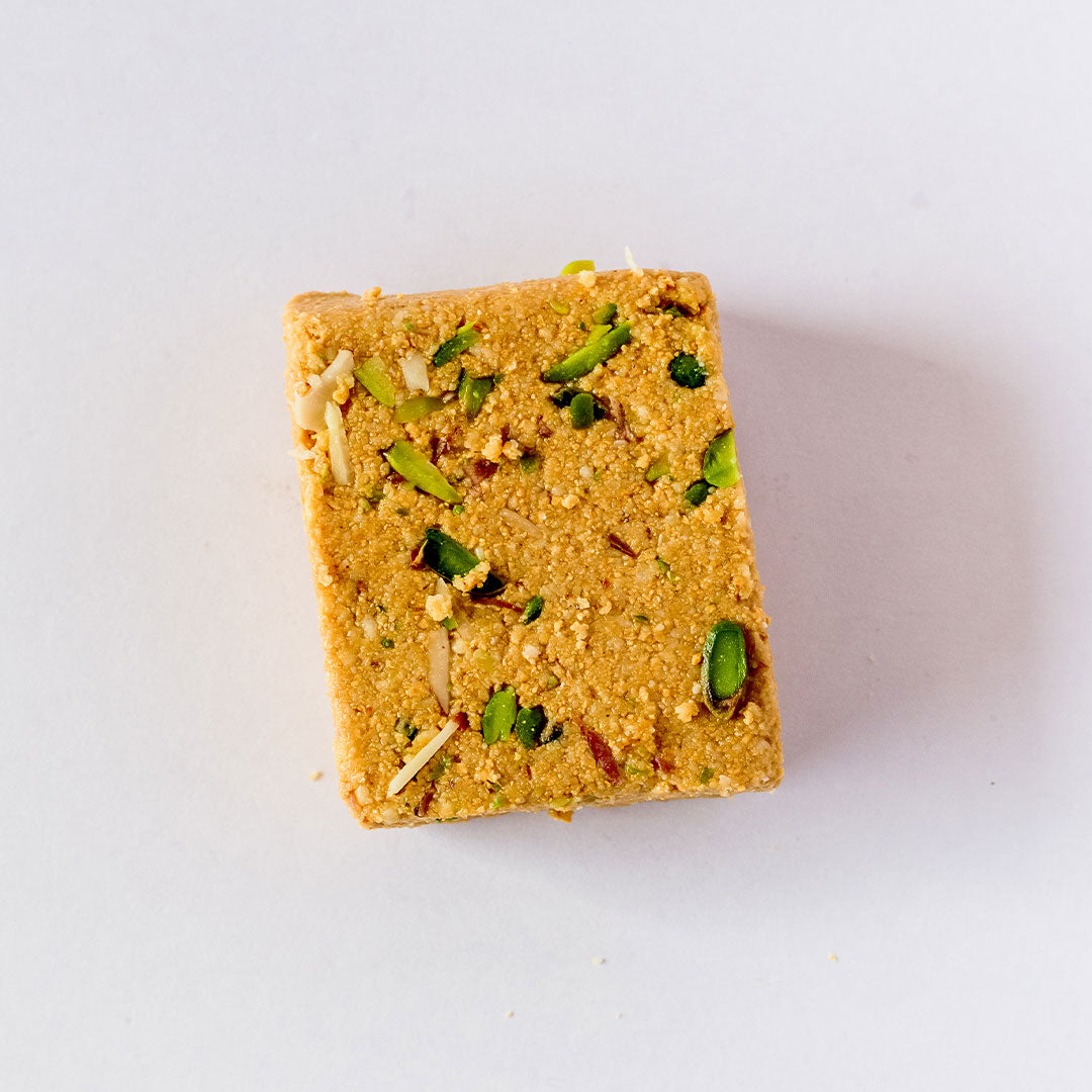 Indulge in the luxurious texture and rich flavor of our Mewa Burfi from Kesar Sweets. This classic Indian confection is an exquisite blend of ground nuts and dry fruits (Mewa), typically including cashews, almonds, and pistachios, bound together with milk solids (khoya) or condensed milk. It is a dense, fudge-like sweet known for its deep, comforting flavor and generous decoration of silver leaf or sliced pistachios.