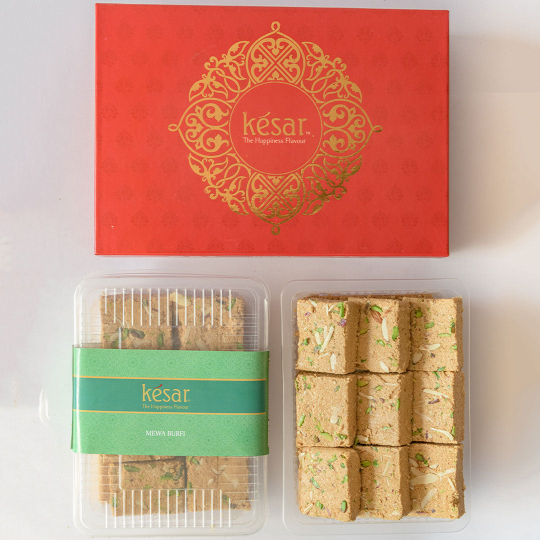 Mewa Burfi is a staple for special occasions and a perfect representation of "The Happiness Flavour." It is elegantly packaged in our signature premium Kesar gift box, making it an impressive and thoughtful gift.
