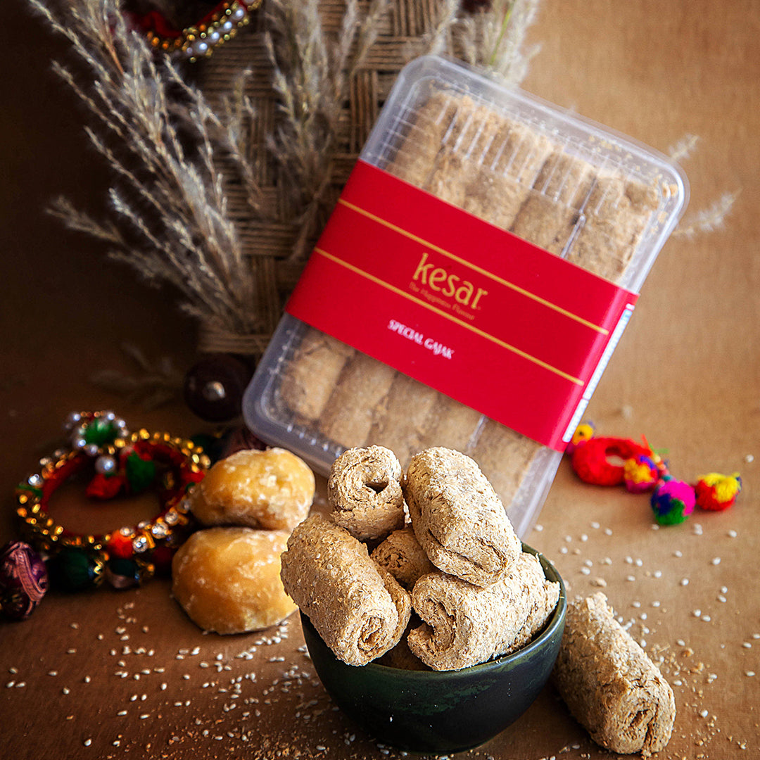 Each roll delivers a satisfying crunch and is packed with warmth and energy. Our Gajak is presented in a practical, attractive box labeled "Special Gajak" by Kesar, ensuring freshness and making it easy to share "The Happiness Flavour."