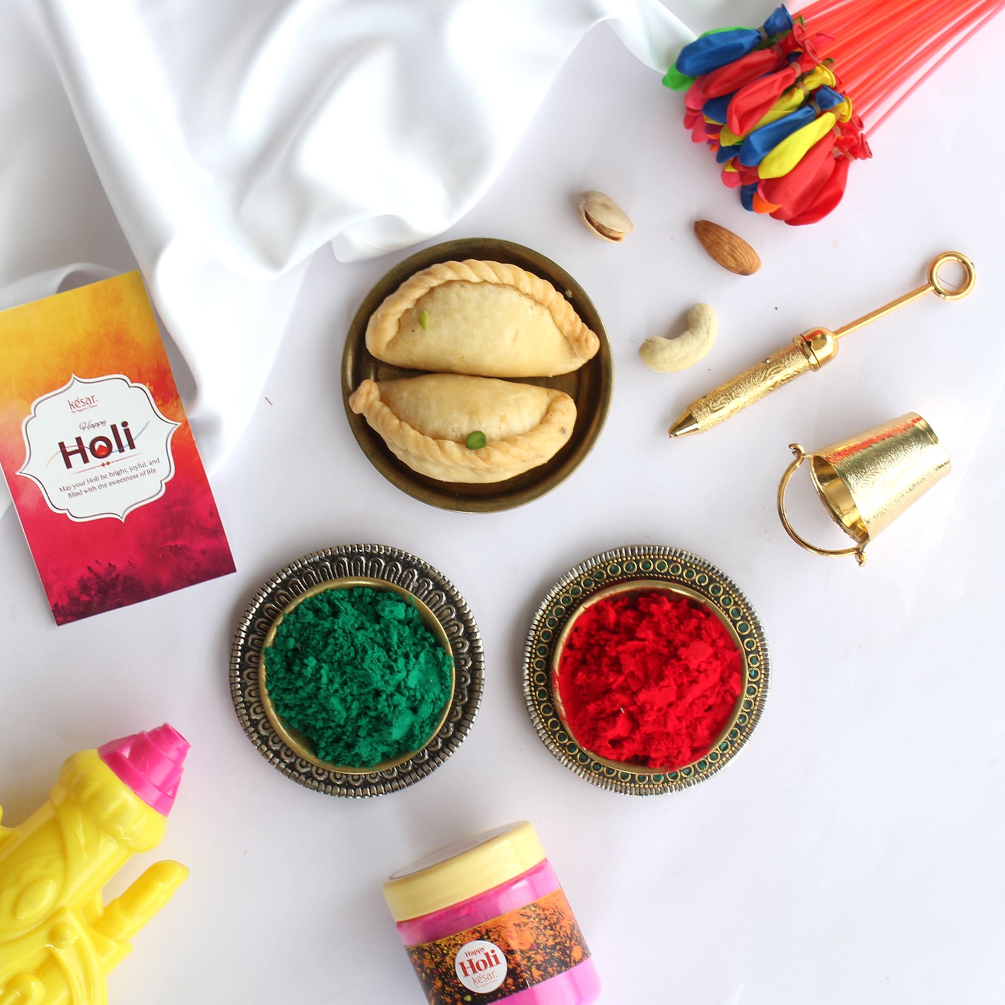 A simple yet thoughtful Holi hamper, perfect for sharing joy, color, and guilt-free sweetness with family and friends.